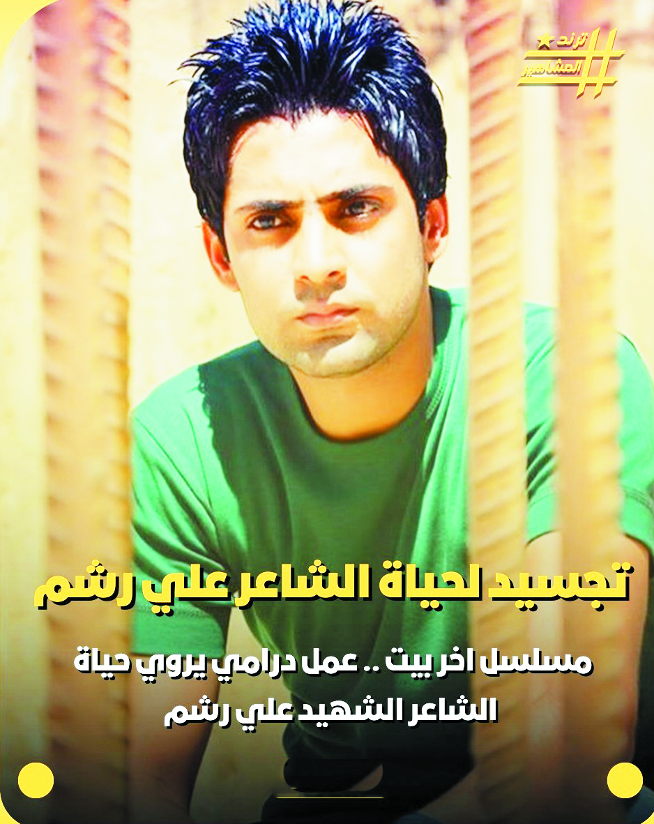تم إطلاق الإعلان التشويقي الرسمي لمسلسل آخر بيت (علي رشم)، الذي يجسّد سيرة الشهيد والشاعر والإعلامي علي رشم، موثّقًا أهم محطات حياته.