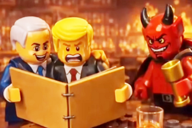 يبدأ الفيلم بمشهد يظهر الرئيس الأميركي دونالد ترامب وإلى جانبه رئيس الوزراء الإسرائيلي بنيامين نتنياهو وشخصية الشيطان وهم ينظرون إلى ألبوم صور كتب عليه بالإنجليزية “ملفات إبستين”.