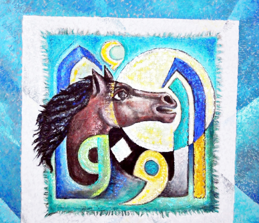 تأتي أيضا المرحلة المعمارية (الأرابسك)، حيث تلاحمت الحروف مع الزخرفة الإسلامية لتشكل ثنائية بصرية تذكرنا بآثار بابل وواجهات المساجد، موظفا نصوصا مقدسة (البسملة والآيات) لا لغرض الوعظ، بل لتحقيق الامتلاء الجمالي والروحي في الفضاء.