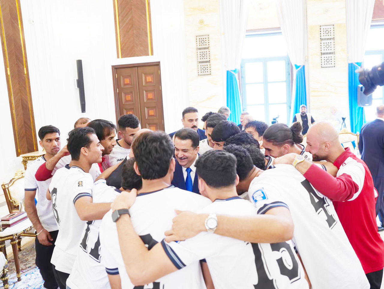 استقبل رئيس مجلس الوزراء محمد شياع السوداني، امس السبت، وفد المنتخب الوطني بعد تأهله لكأس العالم.