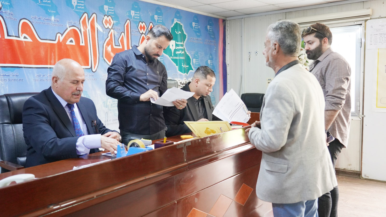 واصلت نقابة الصحفيين العراقيين تجديد هويات اعضائها ورفع ترقين القيود وحسب الحروف.