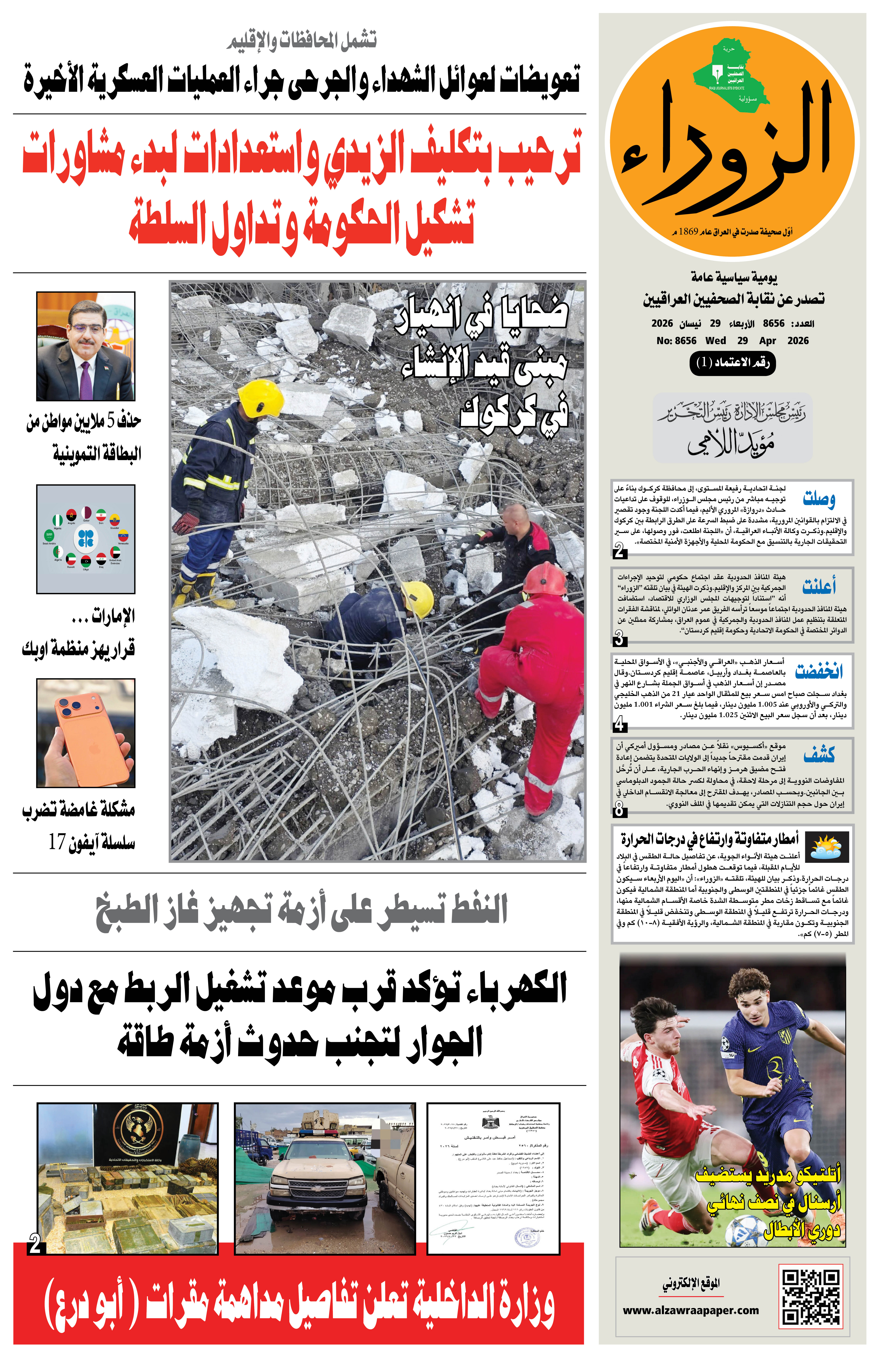 لجنة عليا تباشر التحقيق بحادث انهيار مبنى قيد الإنشاء في كركوك