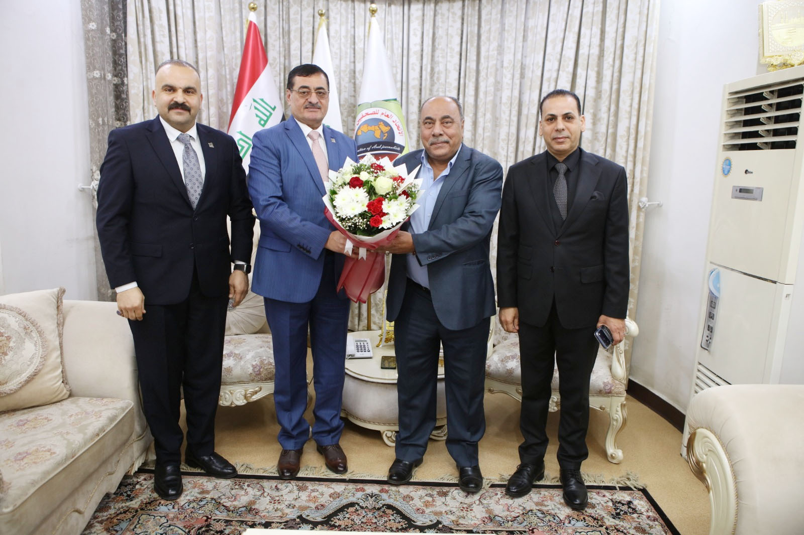 هذا وتلقت نقابة الصحفيين العراقيين بطاقة تهنئة مرفقة بباقة ورد من مدير دائرة المشاريع بأمانة بغداد يقظان عدنان الوائلي، بمناسبة نجاح انتخابات النقابة.