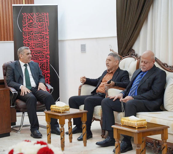 التقى رئيس مجلس محافظة كربلاء المقدسة قاسم علي اليساري، رئيس فرع نقابة الصحفيين في كربلاء حسين الشمري، بحضور عضوي المجلس الشيخ زهير الكريطي و ماجد المالكي. وتم ، خلال اللقاء ، بحث سبل تعزيز التعاون المشترك بين المجلس والأسرة الصحفية في المحافظة. وأكد رئيس المجلس اهمية الدور الذي تضطلع به المؤسسات الإعلامية في نقل الحقائق وتعزيز الشفافية، مشيداً بجهود الصحفيين في دعم مسيرة الاستقرار والتنمية في كربلاء المقدسة، فيما جرى التأكيد على توطيد آفاق التنسيق بما يخدم الصالح العام ويعزز الشراكة بين السلطة المحلية والوسط الاعلامي .