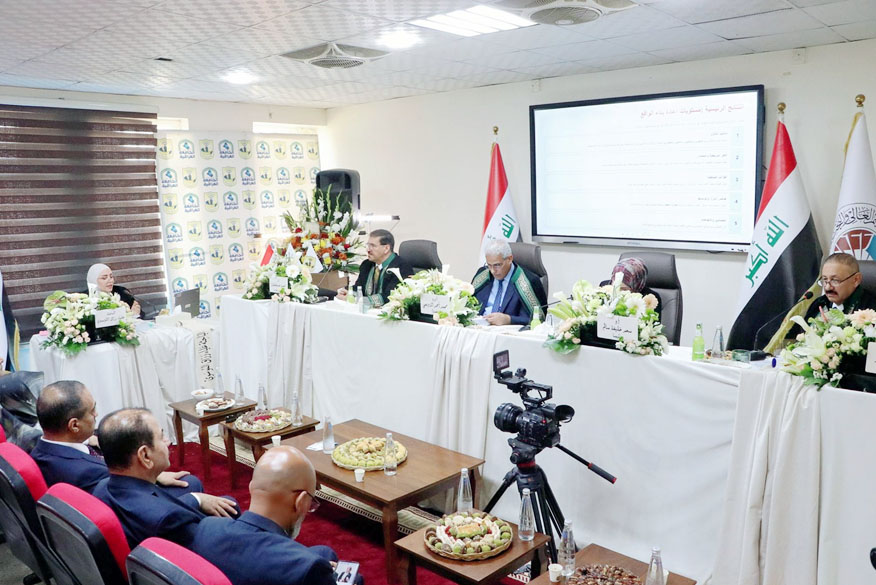 وتألفت لجنة المناقشة من أ.د سحر خليفة سالم رئيساً، و أ.م.د محمد أحمد مخلف عضواً، و أ.م.د صباح عواد محمد عضواً خارجياً، و أ.د محسن عبود كشكول عضواً ومشرفاً، وفي ختام المناقشة قررت اللجنة قبول الرسالة بعد الأخذ بنظر الاعتبار الجهود العلمية المبذولة والنتائج التي توصلت إليها الباحثة، لتكون جزءاً من متطلبات نيل درجة الماجستير.